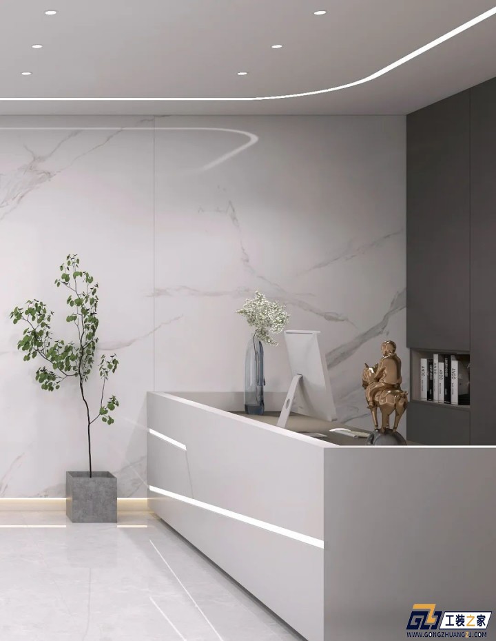 另外,前臺作為臨時等候、接待訪客、招聘面試等功能的樞紐,別忘了在前臺周圍預留沙發卡座區域,方便承接這些溝通洽談的需要。